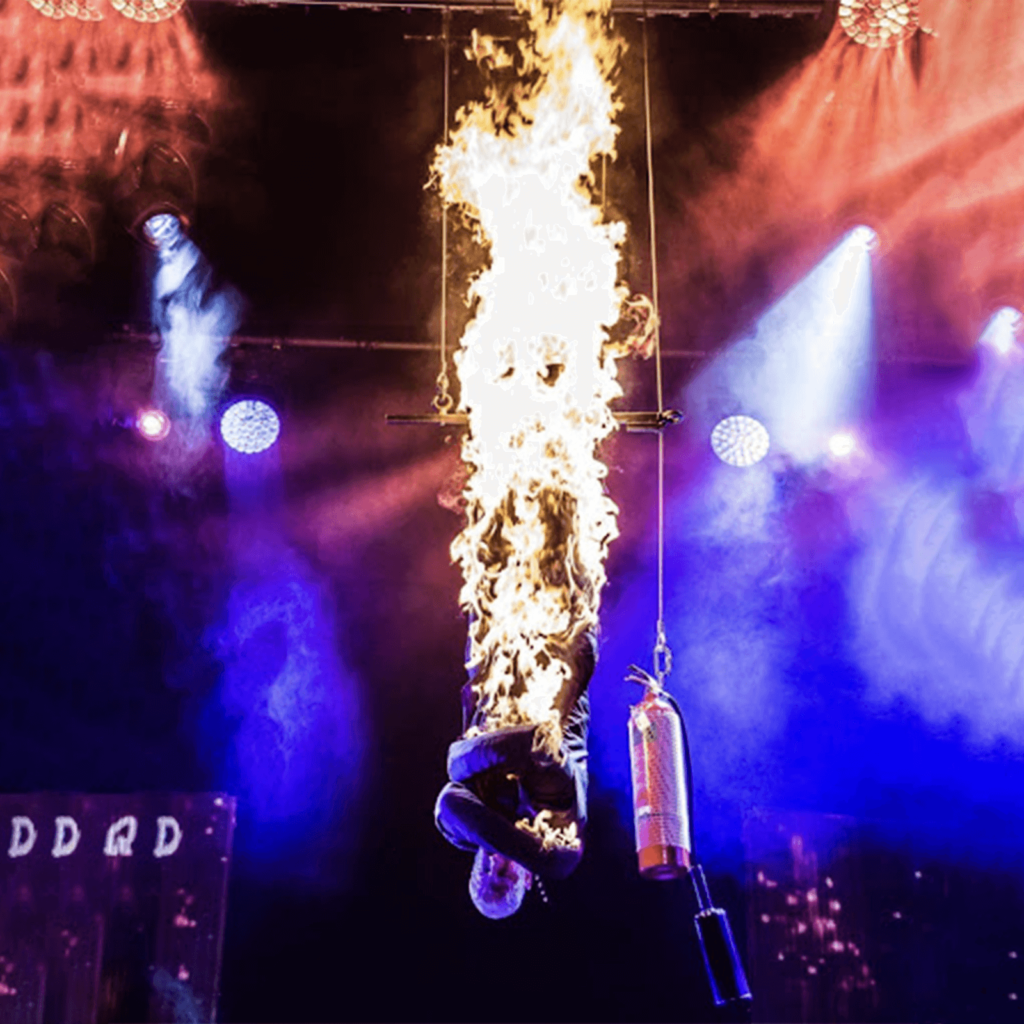 Probably the most act of Jonathan’s career. Jonathan is the only person to have performed a body burn straitjacket escape.